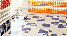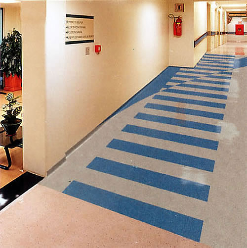 Pisos pastilhados emborrachados e carpetes.